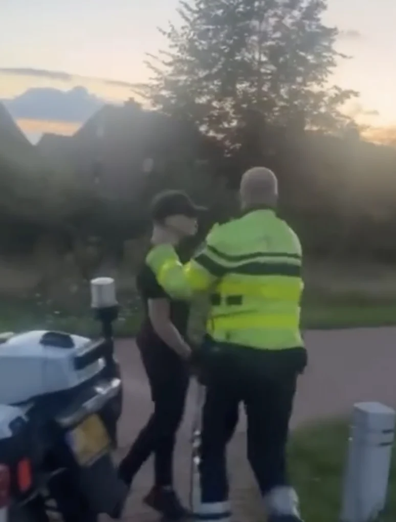 De jongeman werd vastgepakt bij zijn keel en richting het politiebusje geduwd, terwijl hij luid schreeuwde: “Wat wil je doen dan, hè? Wat?!” De video, die inmiddels viraal is gegaan, laat zien hoe de situatie in een fractie van een seconde omsloeg van woorden naar actie. De agent leek het gedrag van de scooterrijder volledig zat te zijn en greep zonder aarzeling in. Voorbijgangers keken toe, zichtbaar verrast door de directe en harde aanpak. Het tafereel is niet onopgemerkt gebleven en zorgde voor uiteenlopende reacties online.