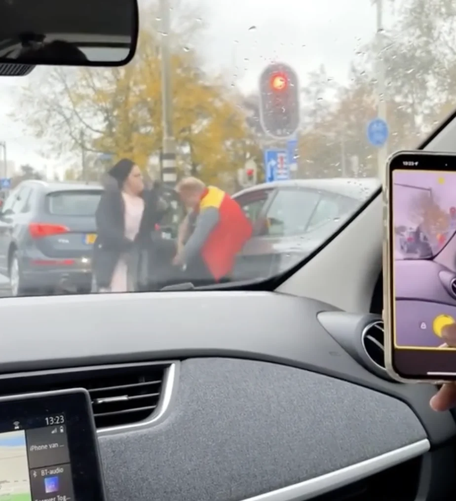 Volgens ooggetuigen begon de ruzie met iets kleins: de vrouw zou zich geërgerd hebben aan de positie van de bezorger in het verkeer. In plaats van door te rijden of de situatie te laten rusten, besloot ze uit te stappen en het gesprek te forceren. Wat volgde was geen kalme uitwisseling van woorden, maar een agressieve toon die de aandacht van voorbijgangers trok. De verhitte woordenwisseling kreeg al snel een fysieke lading, waardoor de spanningen oncontroleerbaar leken te worden.