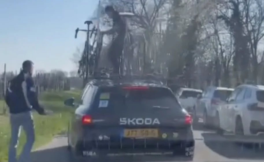 Op beelden die razendsnel rondgaan op sociale media is te zien hoe twee mannen zich agressief richten op de volgwagen van Visma | Lease a Bike. Wat volgt is een chaotisch tafereel waarin frustratie, adrenaline en onbegrip samenkomen.