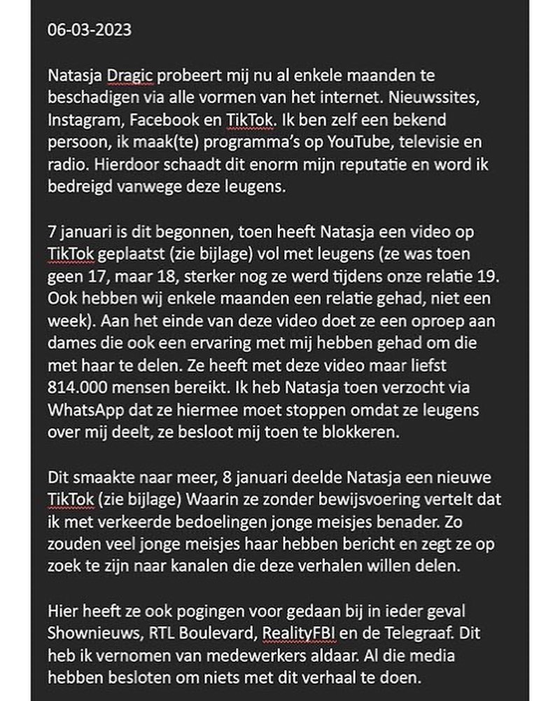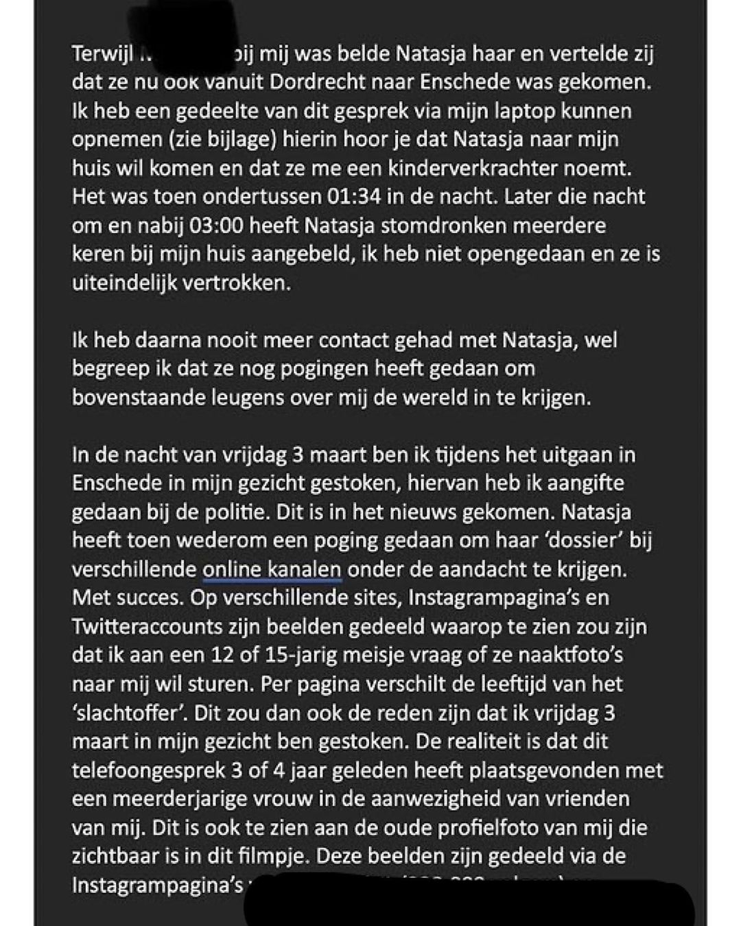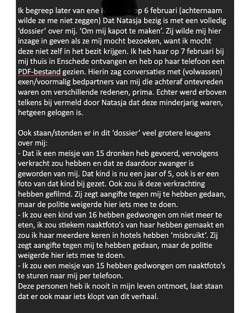 Het is belangrijk om te benadrukken dat het hier gaat om aantijgingen en dat het aan de politie en justitie is om te onderzoeken wat er precies is gebeurd. Voor Dennis is het van belang dat er zorgvuldig wordt omgegaan met deze zaak en dat de feiten op tafel komen. Het is begrijpelijk dat hij zich wil verdedigen tegen de beschuldigingen en bedreigingen, maar het is aan de autoriteiten om de waarheid boven tafel te krijgen.