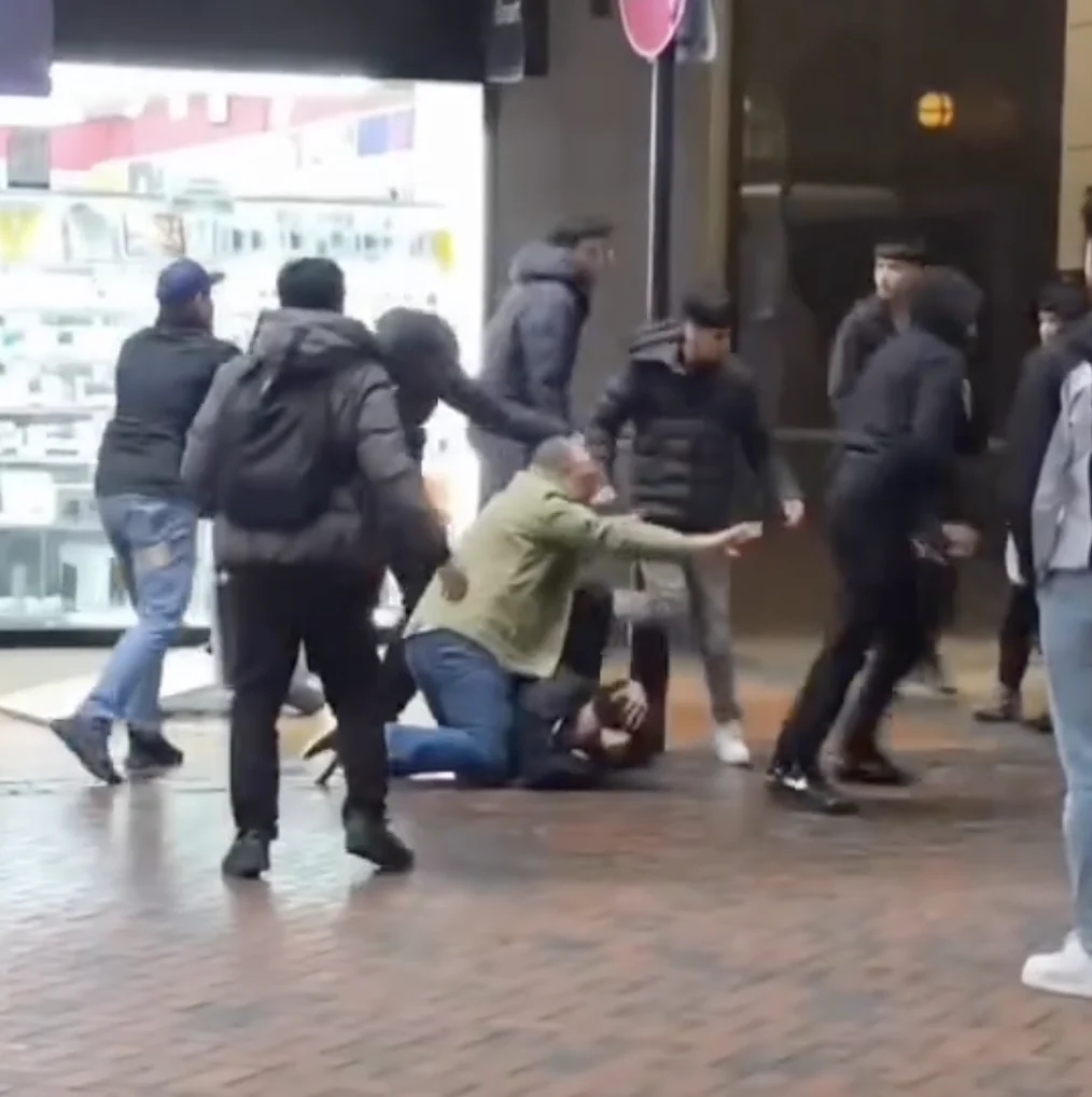 Een schokkende confrontatie in een drukke woonwijk veranderde in enkele seconden van een hevige vechtpartij in een indrukwekkend voorbeeld van moed en menselijkheid. Een jongeman werd belaagd door een groep leeftijdsgenoten die hem met vuisten en trappen naar de grond werkten. Terwijl omstanders zichtbaar geschrokken waren en niemand leek in te grijpen, stapte een volwassen man naar voren en koos zonder twijfel de kant van het slachtoffer. Hij wierp zich letterlijk bovenop de jongen om hem te beschermen tegen de aanhoudende agressie van de groep.